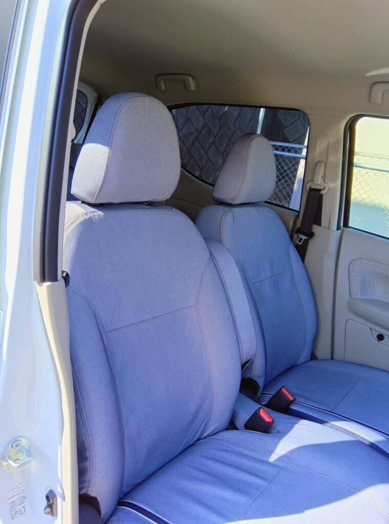 シートカバーは、裏返しにしたデニムを再現した生地が取り付けられています。