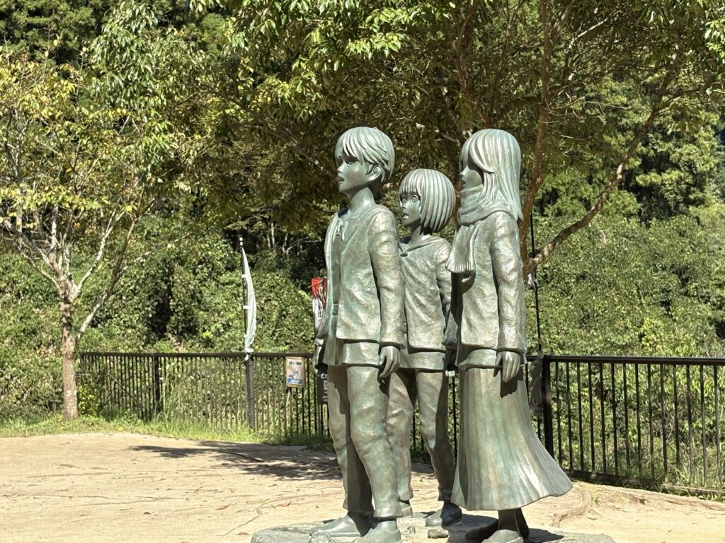 大山ダムに アレン・ミカサ・アルミンの銅像があります。いつか行きたいなぁ~